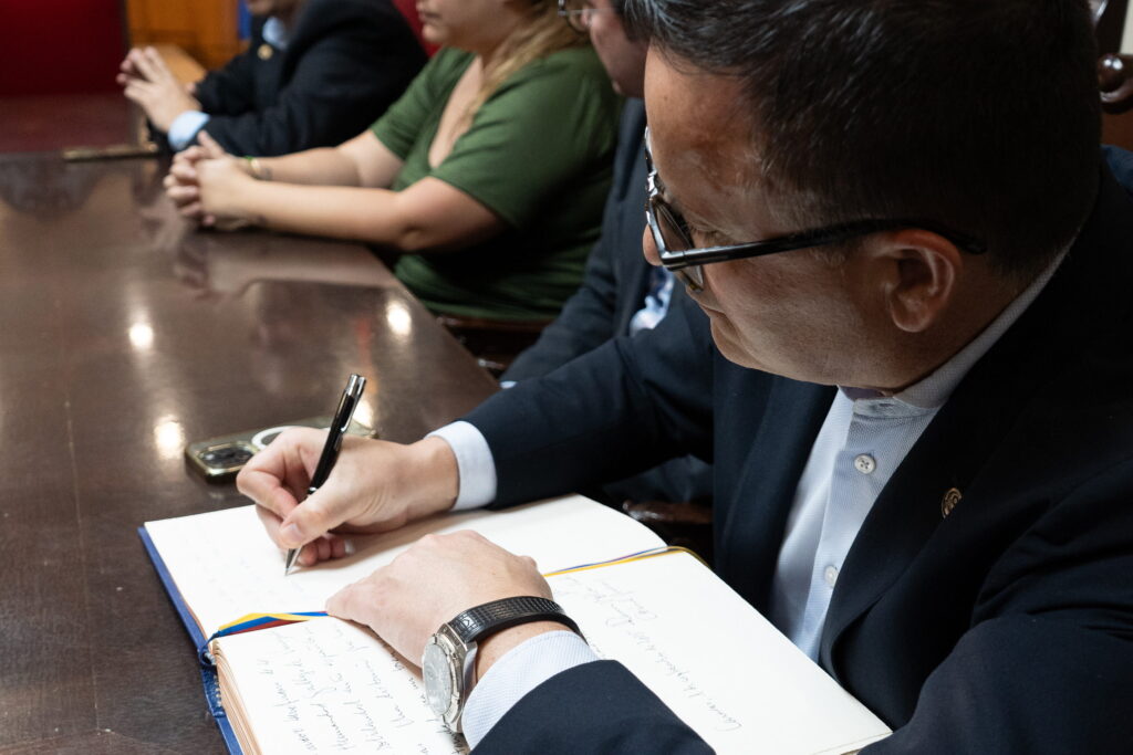 La jornada inició con un recorrido oficial por las instalaciones de nuestra sede, donde las autoridades visitaron el Centro de Día Santiago Apóstol y la Oficina de Bienestar y Asuntos Sociales. Durante esta actividad, se llevó a cabo la firma del Libro de Oro de la Hermandad Gallega de Venezuela, un acto protocolar que dejó constancia histórica de esta importante visita institucional.