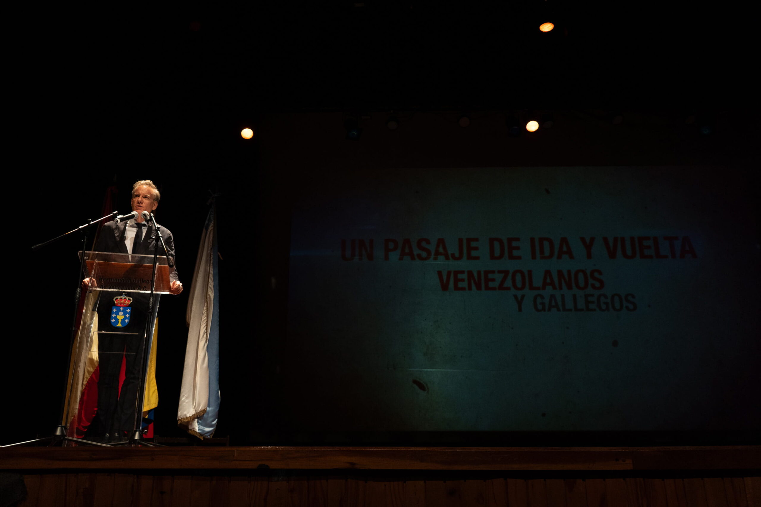 El pasado 24 de marzo, con ocasión del estreno del documental «Un pasaje de ida y vuelta: Venezolanos y Gallegos» nuestra institución recibió a importantes personalidades del gobierno español. Por parte de la Embajada de España en Venezuela contamos con la visita del Embajador Álvaro Enrique Albacete Perea, Pedro Martínez Avial, Consejero Cultural y Fernando Varela Carid, Consejero Económico Comercial. Asimismo, recibimos por parte de la Xunta de Galicia a los distinguidos señores: José González Vázquez, Conselleiro de Emprego, Comercio e Emigración, y a Antonio Rodríguez Miranda, Secretario Xeral da Emigración. También nos acompañaron una importante representación de las siguientes instituciones: Centro Gallego de Puerto La Cruz, Hermandad Gallega de Maracaibo, Centro Gallego de Valencia Centro Gallego de Barquisimeto y de la asociación Fillos de Galicia de Aragua.